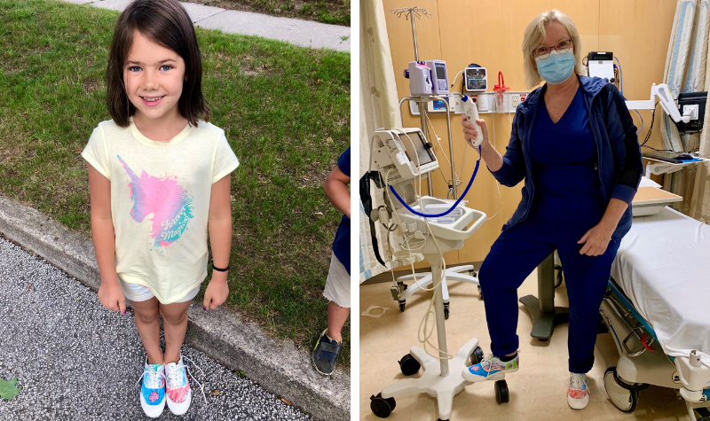 Although both Kyleigh and Ms. Libby do not treat Tyson directly, this family wanted them to know just how much they are appreciated for all that they do, for both their family and others like them. When asking the kids the inspiration behind their shoe design, Tyson’s 7-year-old sister Jane told her mom, “Because I like to colour things and make them nice if I’m giving them to someone,” and his 6-year-old brother Malachi said, “Because they’re Miss Libby’s and I feel like she likes flowers so I drawed a flower, that’s why.”