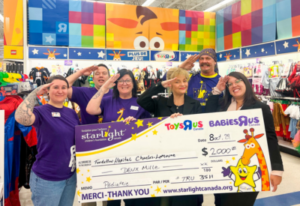 Depuis 26 ans, Toys“R”Us Canada s’associe à Starlight Canada pour apporter de la joie à des familles qui en ont grandement besoin et servir de lueur d’espoir pour ces enfants qui affrontent courageusement une maladie grave. Grâce à des campagnes de financement sincères, à la commandite d’événements Souhaits de Grandes évasions inoubliables, à un soutien essentiel envers les hôpitaux à l’échelle nationale et à bien d’autres choses encore, Toys“R”Us Canada continue d’offrir des instants de bonheur et d’apaisement grâce au pouvoir du jeu.