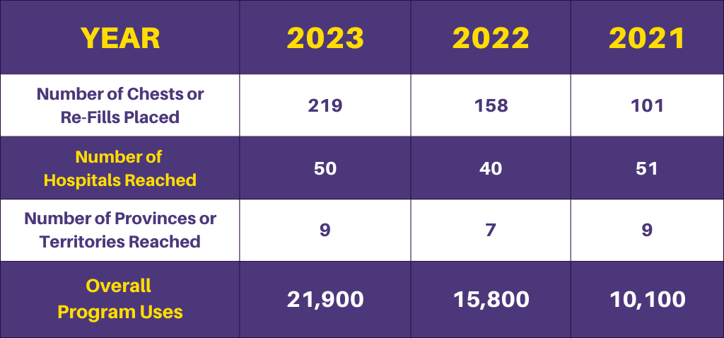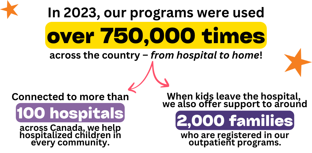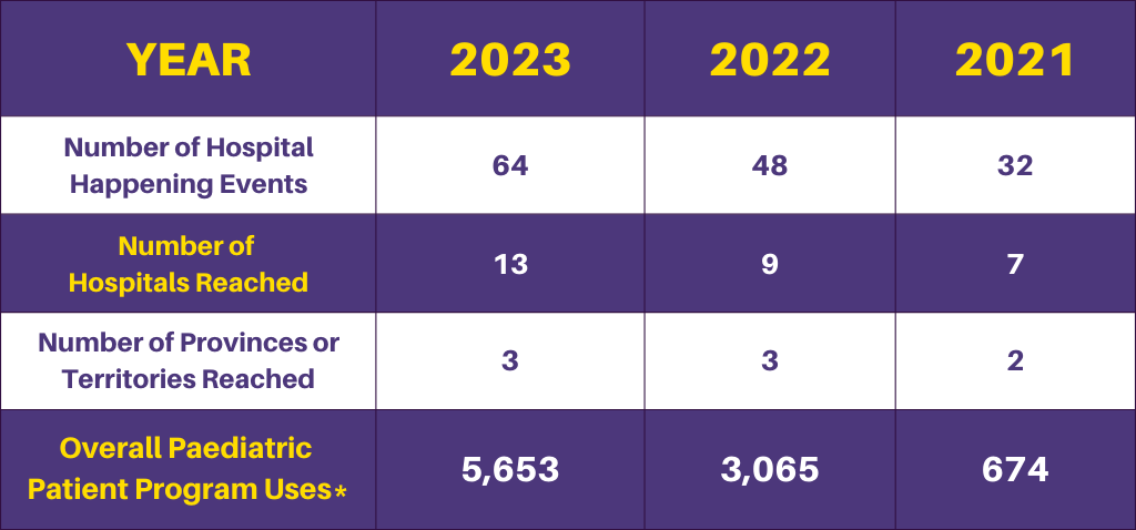 Over 30,000 requests were made for our programs in 2023 by our Canadian health care partners. Surveys are held annually with our national paediatric hospital partners to identify individual program needs/requests. To view the direct requests as indicated from each hospital, please visit our Hospital Wish List platform.