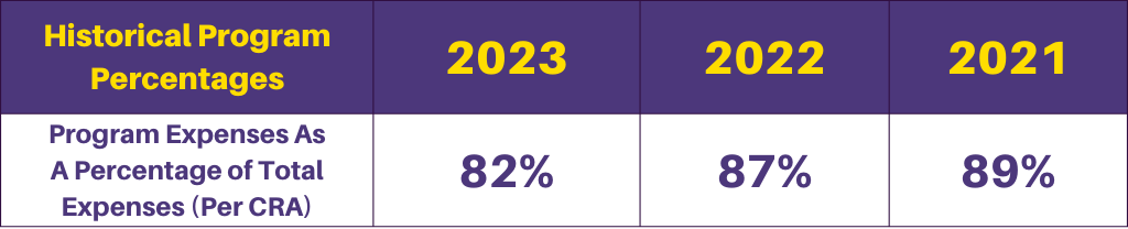 The decrease in the percentage of program spending is primarily attributed to our gradual return to in-person events and fundraisers following the easing of COVID-19 restrictions. Despite this shift, the actual dollar amount allocated to programming has notably increased by 25% since 2021. This increase underscores our commitment to the quality of our services, ensuring that we can continue to meet the needs of the communities we serve effectively.