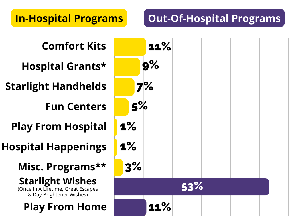 FAMILY DISCUSSIONS: Through FUBU (For Us By Us) discussions that are held at minimum once a year, consisting of a group of Starlight families that provide programming feedback, it was concluded that Starlight Great Escapes Wishes are our #1 requested out-of-hospital program for families with sick children. Given this significant demand, it represents our largest out-of-hospital program expenditure.