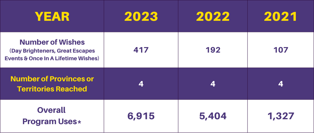 PROGRAM UPDATES: Please note that Once In A Lifetime Wishes were limited in 2021 due to pandemic restrictions, as reflected in the chart below.