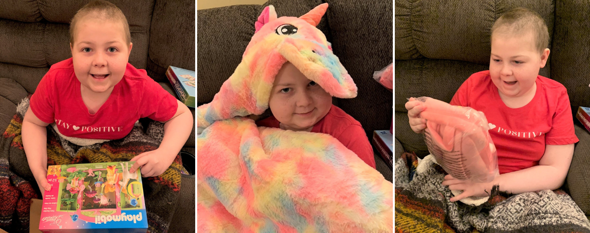 During an unimaginable time for any family, Starlight Canada aimed to make her days a little brighter. While her family adjusted to the all too familiar chemotherapy treatments, a care package full of some of her favourite things – including a cozy unicorn blanket/sweater that she wore for an entire day straight – helped her know she’s not alone.