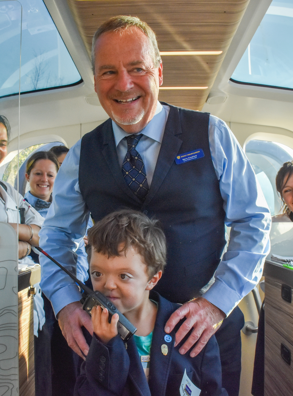 Not only did this trip give Starlight kids plenty of fun and new friends, but it also gave them plenty of new experiences! Among the group was 7-year-old Marshall from Ontario who lives with a congenital condition that attacks his skeletal system. His ability to command a room was quickly noticed by Train Manager, Barry, who turned Marshall into an honourary member of the Rocky Mountaineer train staff for a day, complete with a manager’s jacket and walkie-talkie!